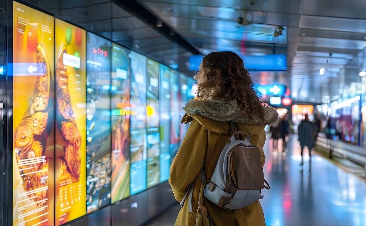 屋外のショーウインドウや駅、空港など、公共空間での使用にも適しており、昼夜を問わずクリアな視認性を提供します。